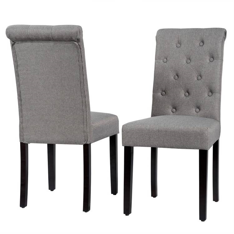 These chairs are the key to perfectly complementing your dining table so you can enjoy every meal with great comfort. This Set of 2 Grey Linen Button Tufted Dining Chair with Wood Legs features an extra comfy cushioning that will help you to relax and enjoy meals or just relaxing. The linen fabric not only provides superior breathability, but also expand life span with great durability. Their high, curved backrest are designed to relieve back fatigue and provide extra support. The sturdy wood, solid construction, and adjustable foot pads result in an overall stable structure that remains secure and does not wobble. No need to worry about assembly as the simple assembly instructions will have these chairs set up in no time. If you are looking for such dining chair, why not try?