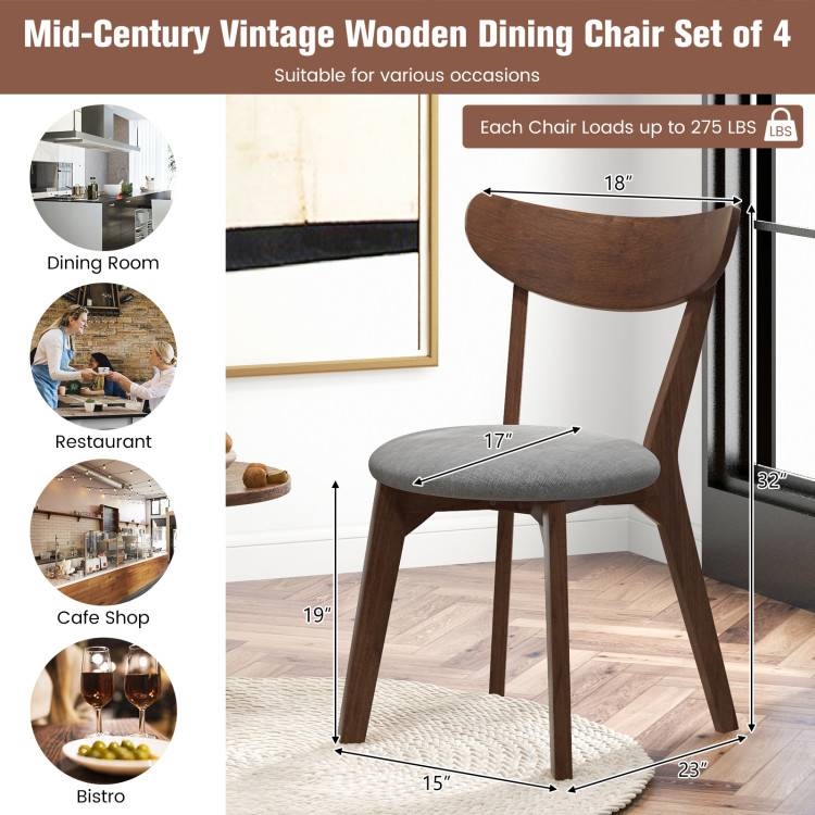 Filled with high density and elastic sponge, this Set of 2 Mid-Century Modern Curved Back Wood Dining Chair Grey Upholstered Seat will provide comfortable sitting experience and avoid tired feeling when sitting for long time. Covered with soft upholstery, the chairs feature smooth tactility and superior air permeability, which will make a difference in the level of comfort. Designed with curved backs, the chairs allow you to lean against the back thereby reducing the back muscle stiffness and relaxing your body. Plus, the chairs adopt an optimal angle of inclination, making it possible to fit well with your body curve. 4 Splayed legs made of natural rubber wood cannot only disperse pressure evenly to enhance stability but also ensure superior durability and long term service time. The wood structure is sturdy enough to support you firmly while a solid connection will improve safety and reliability. The chair can be used as a vanity chair in front of your dresser, dining chair in your dining room and corner chair next to coffee table. Wherever the mid-century elegant chairs are placed, they will satisfy your requirement and match perfectly with the room décor. The chairs are easy to assemble, taking less time and energy to figure out how to put them together. In the meanwhile, you can wipe dust off and remove stain easily to keep chair clean with a soft cloth. Besides, smooth corners will protect you from scratch.