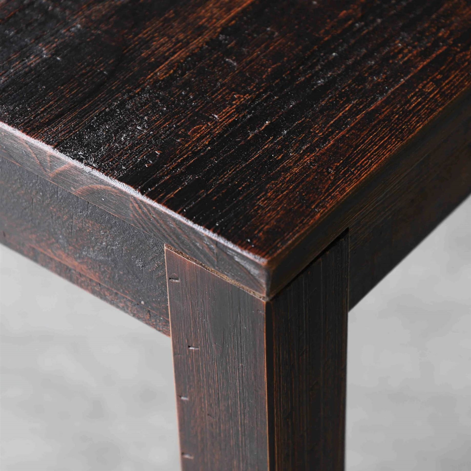 Give your dining room a rustic, modern farmhouse look with the warmth of this Modern Farmhouse 63-inch Solid Wood Dining Table in Rustic Dark Brown Finish. This versatile and neutral design goes well with several chair types. It features robust and sturdy wood construction made of 100% solid pine wood from Southern Brazil. The finish is designed to accentuate the unique grain, knots, and natural textures in the wood panels; and each piece is sanded and distressed by hand leading to variations in the color and texture that make every unit unique. This distressed finish is very durable and easy to touch-up.