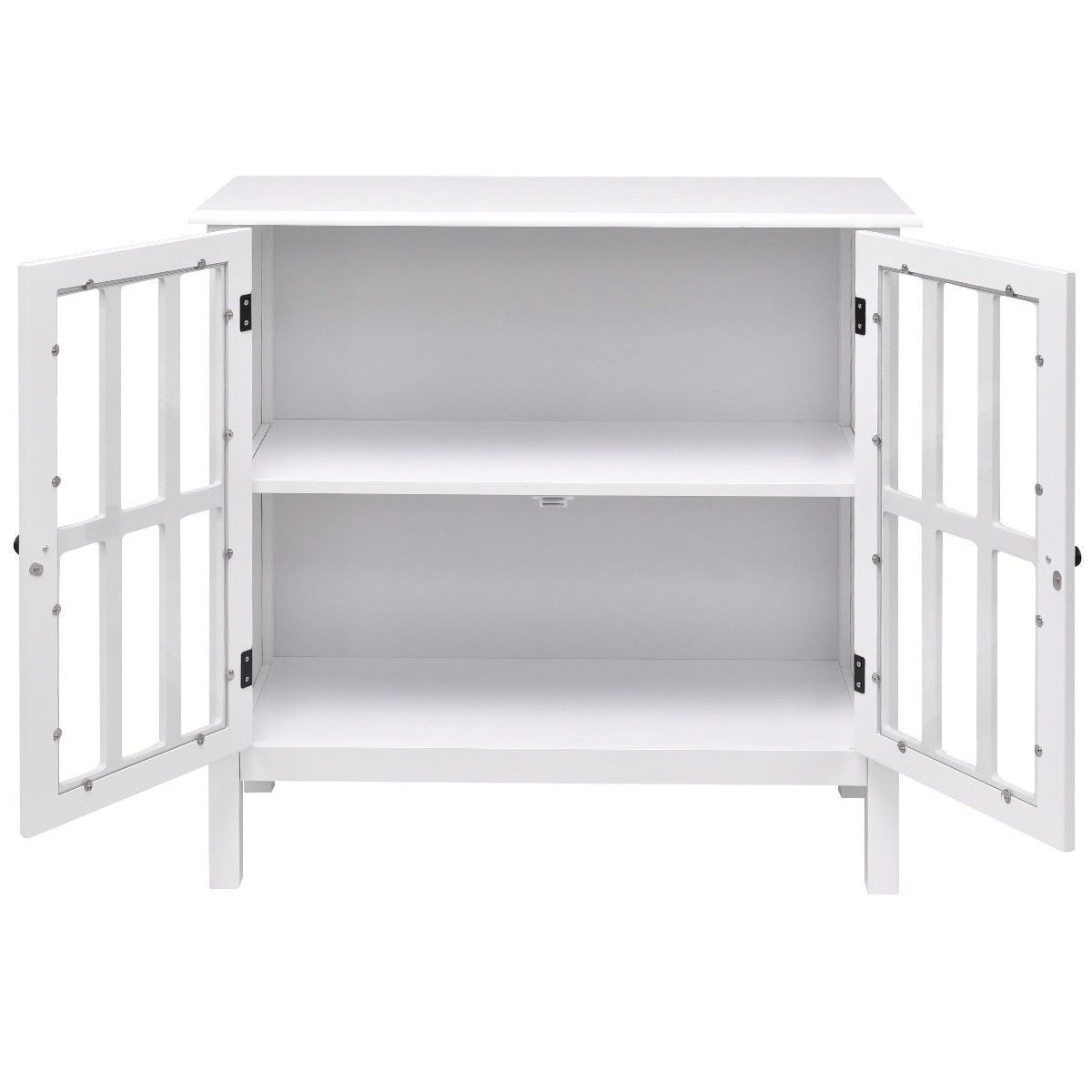 • White Wood Sideboard Buffet Cabinet with Glass Panel Doors